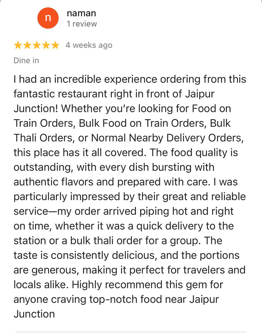 Our system makes Order Food Online on Trains at Jaipur Junction fast, simple, and secure.